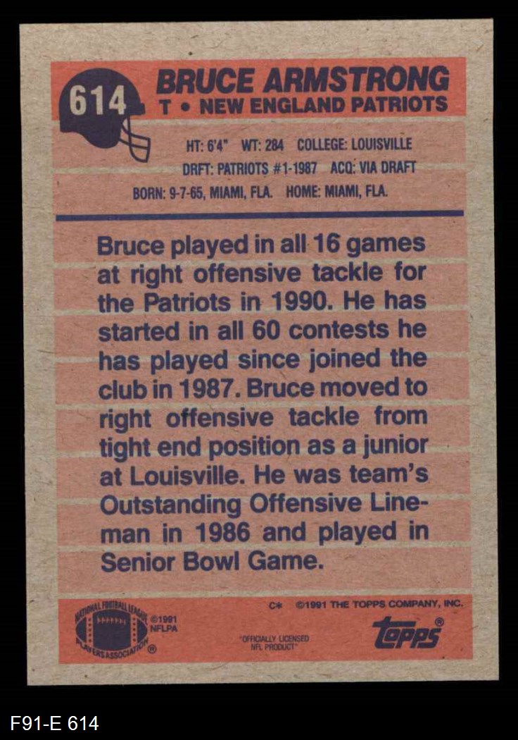 1991 Topps #614 Bruce Armstrong 8 - NM/MT