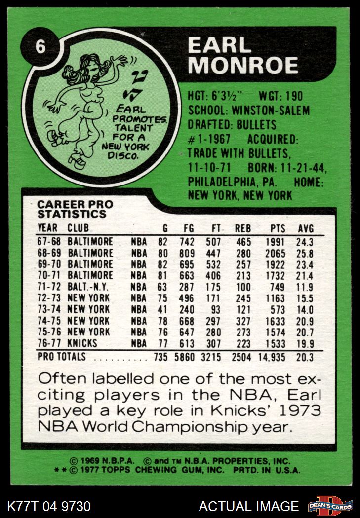 1977 Topps #6 Earl Monroe 7 - NM