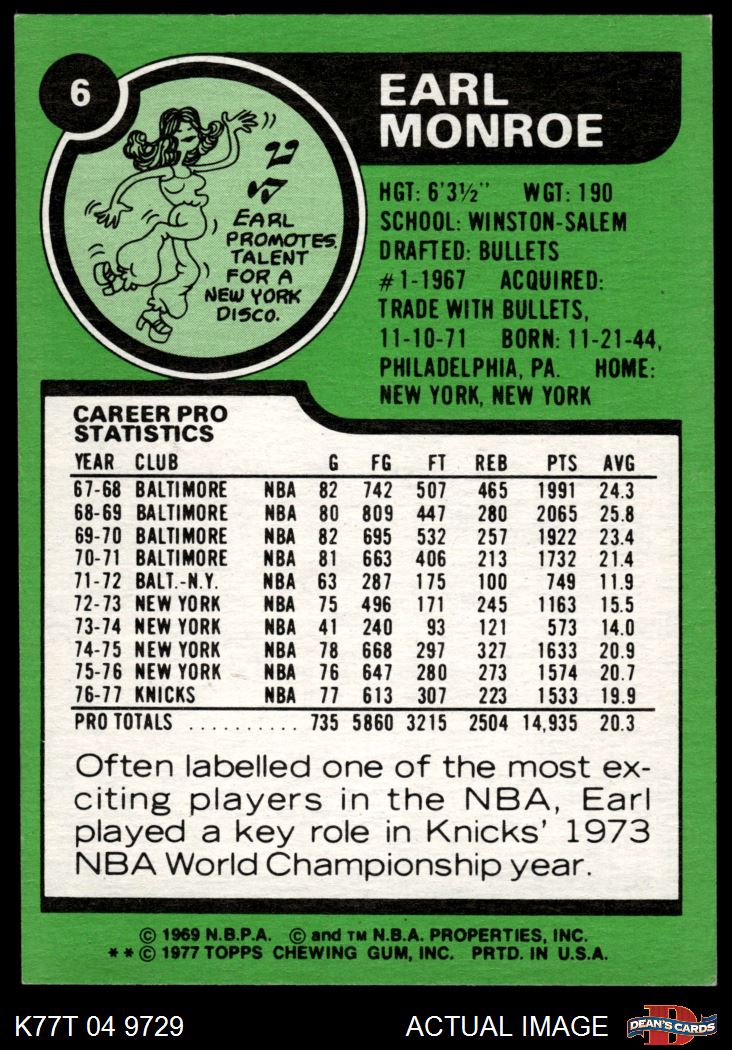 1977 Topps #6 Earl Monroe 8 - NM/MT