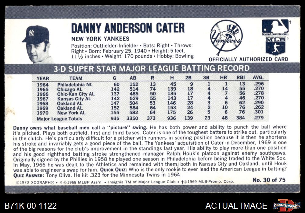 1971 Kellogg's #30 Danny Cater 4 - VG/EX