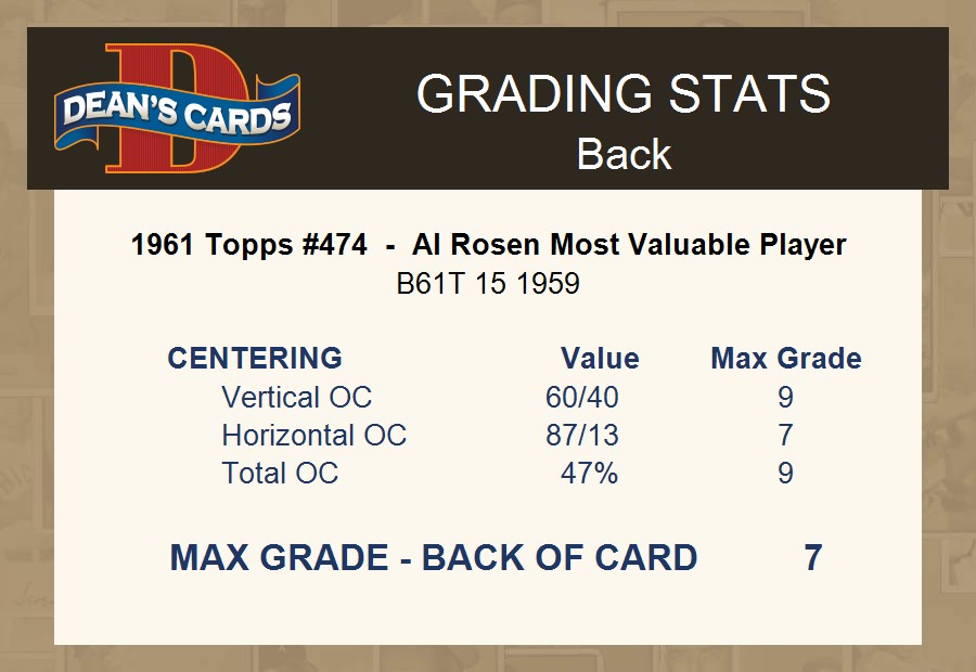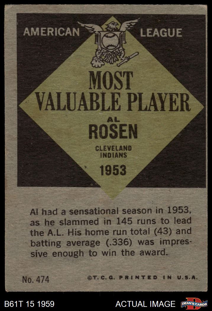 1961 Topps #474 - Al Rosen Most Valuable Player 2 - GOOD