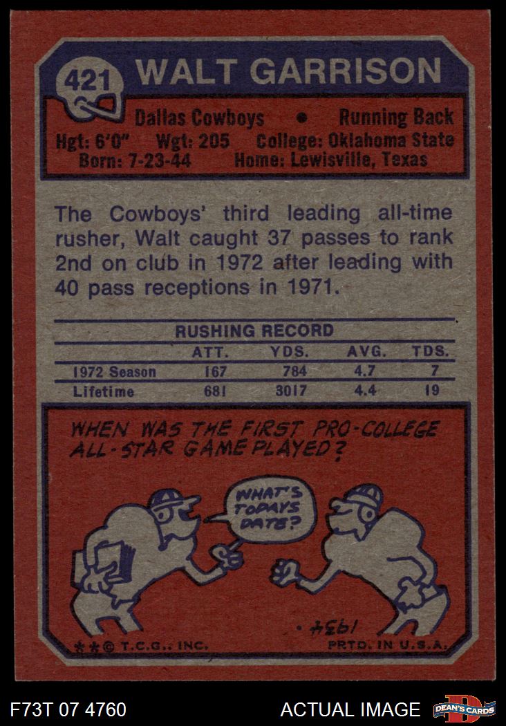 1973 Topps #421 Walt Garrison 6 - EX/MT