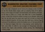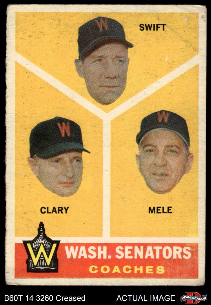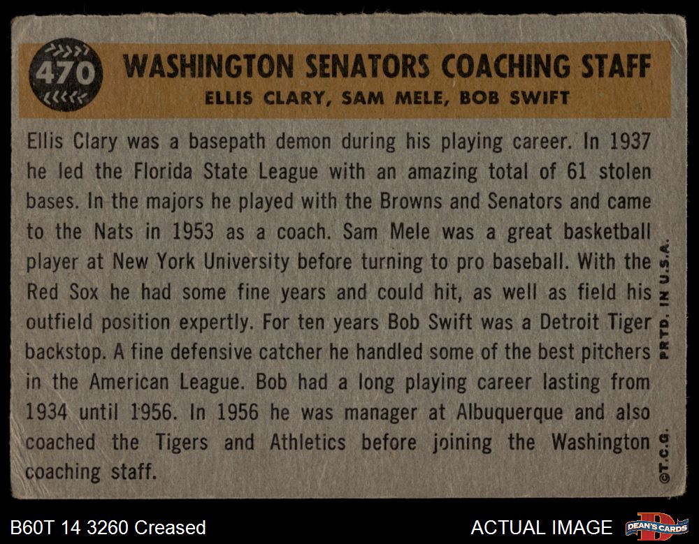 1960 Topps #470 - Bob Swift / Ellis Clary / Sam Mele Senators Coaches 2 - GOOD