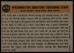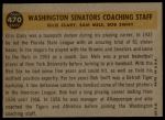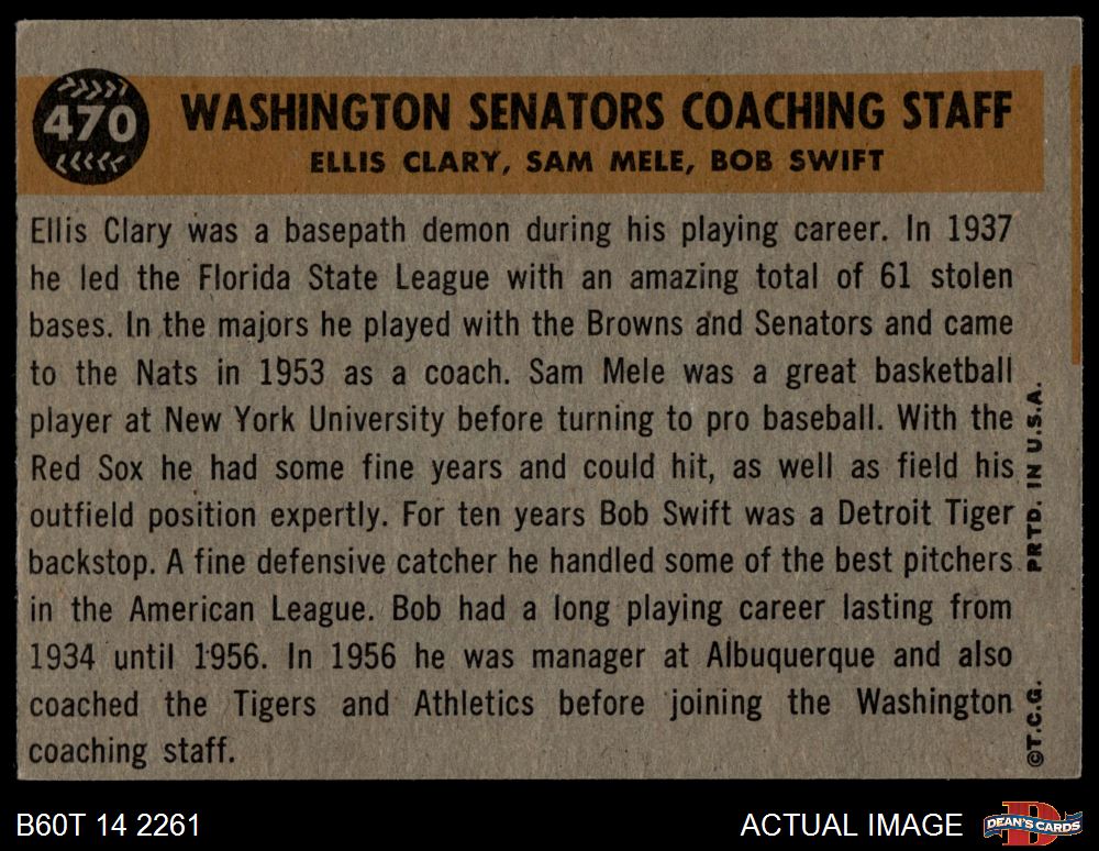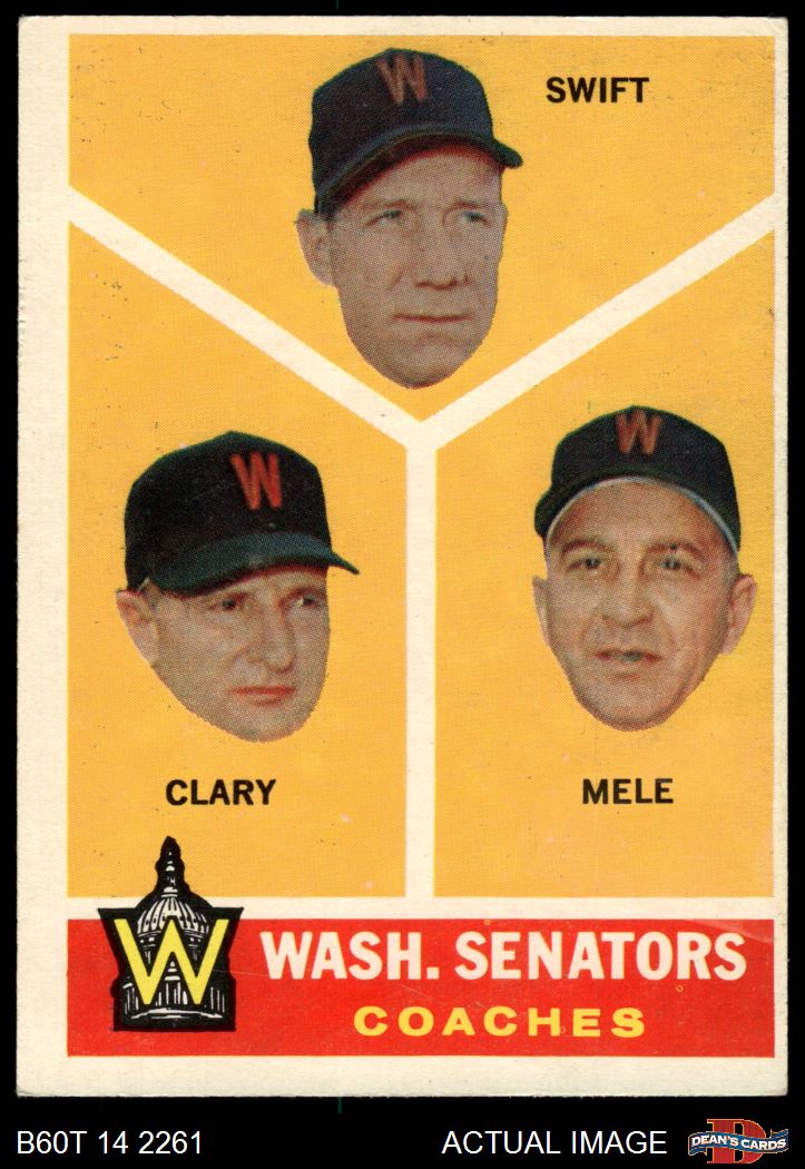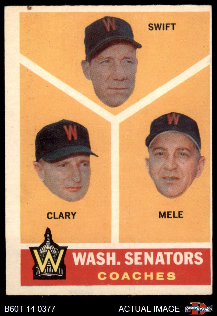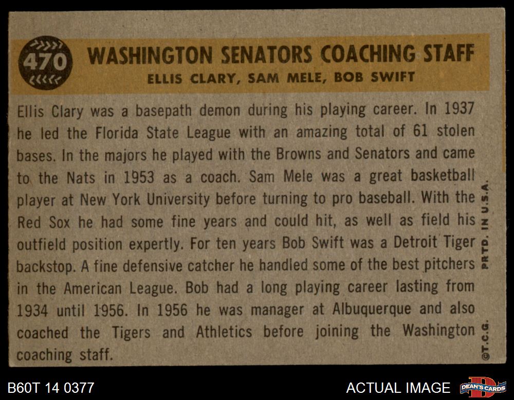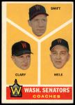1960 Topps #470 - Bob Swift / Ellis Clary / Sam Mele Senators Coaches 4 - VG/EX