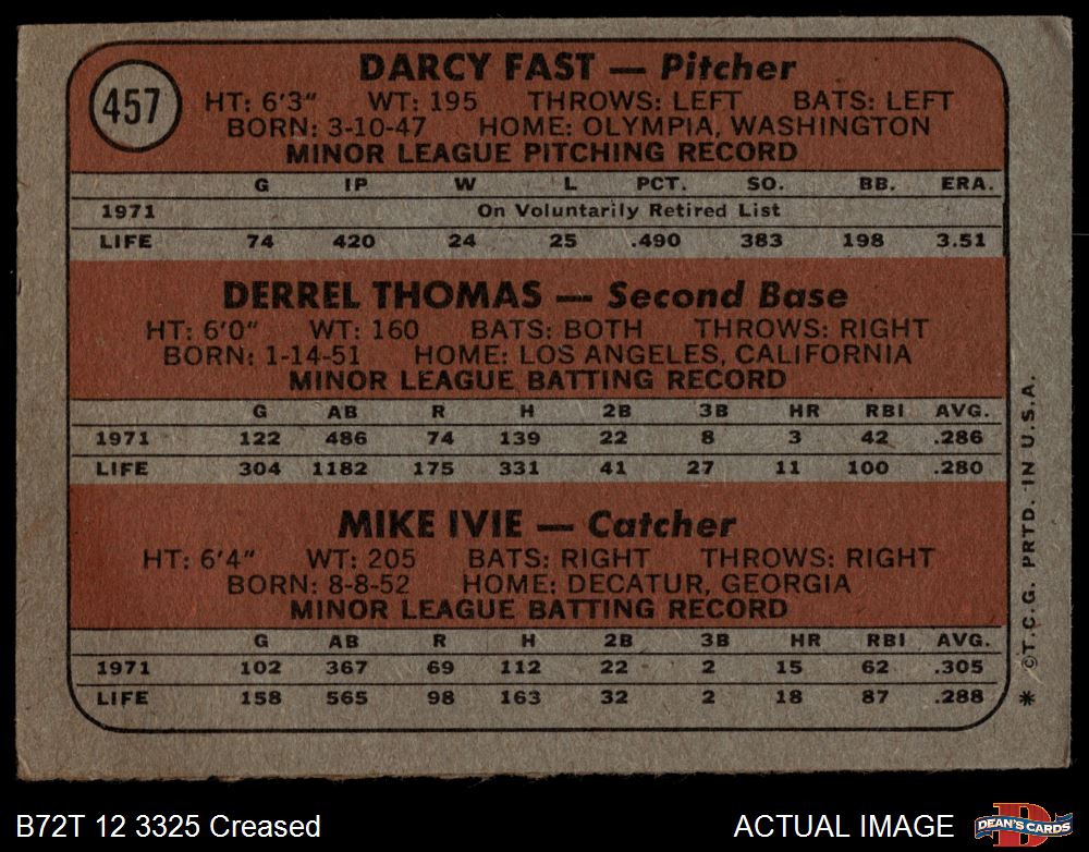 1972 Topps #457 - Derrel Thomas / Mike Ivie / Darcy Fast Padres Rookies 2 - GOOD