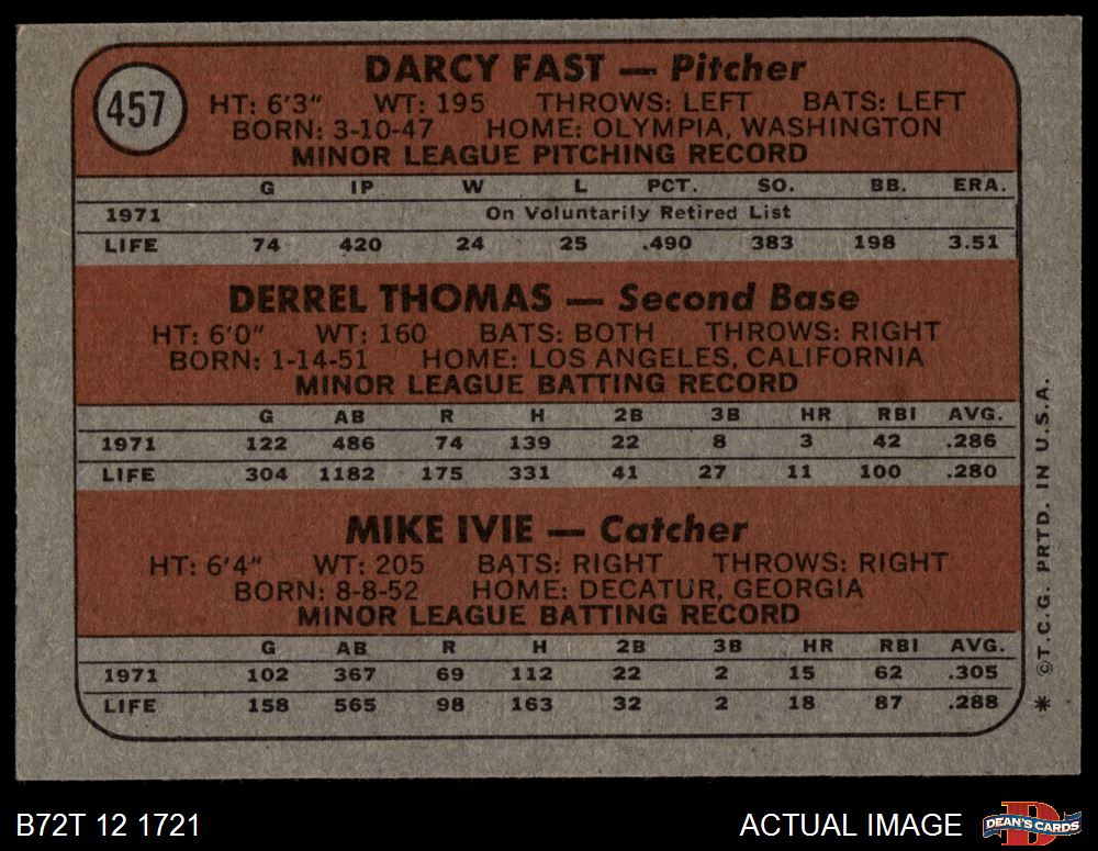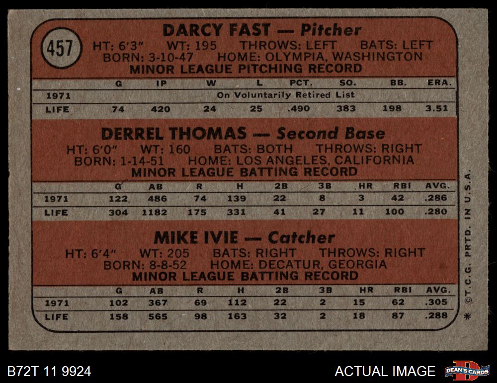 1972 Topps #457 - Derrel Thomas / Mike Ivie / Darcy Fast Padres Rookies 5 - EX