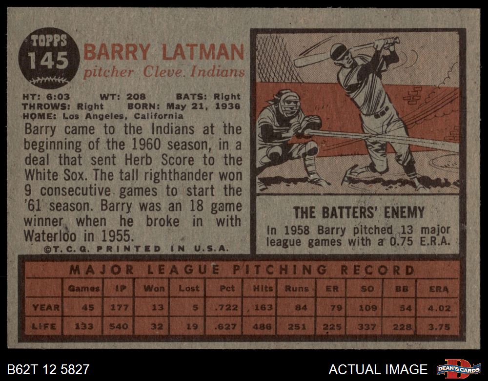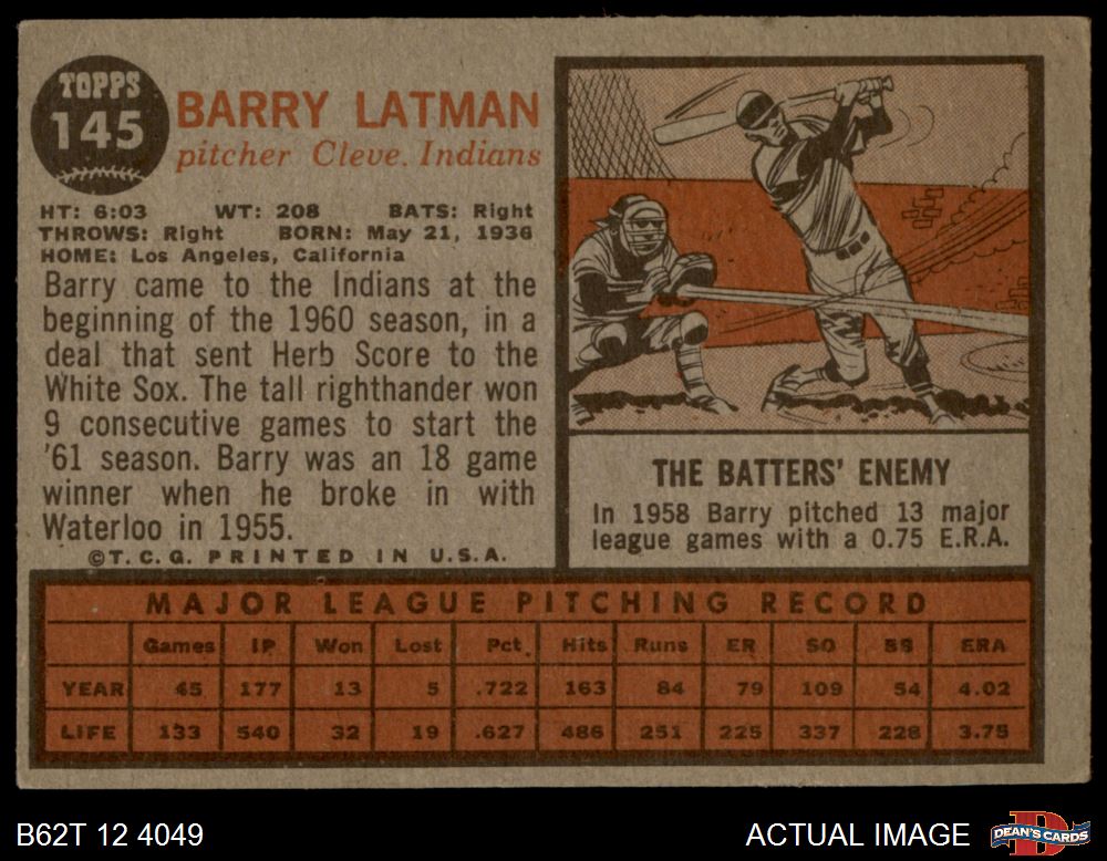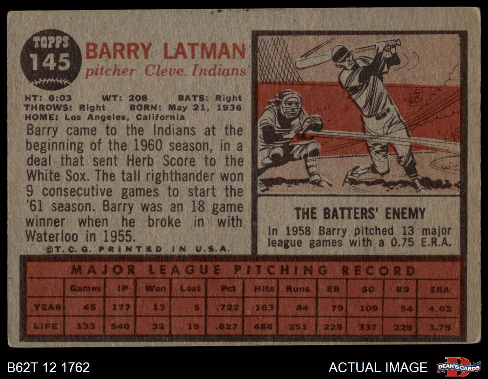 1962 Topps #145 NRM Barry Latman 1.5 - FAIR
