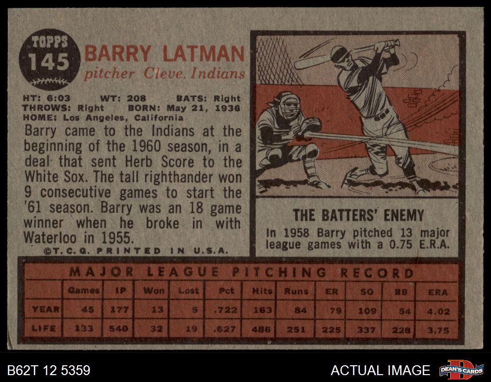 1962 Topps #145 NRM Barry Latman 3 - VG
