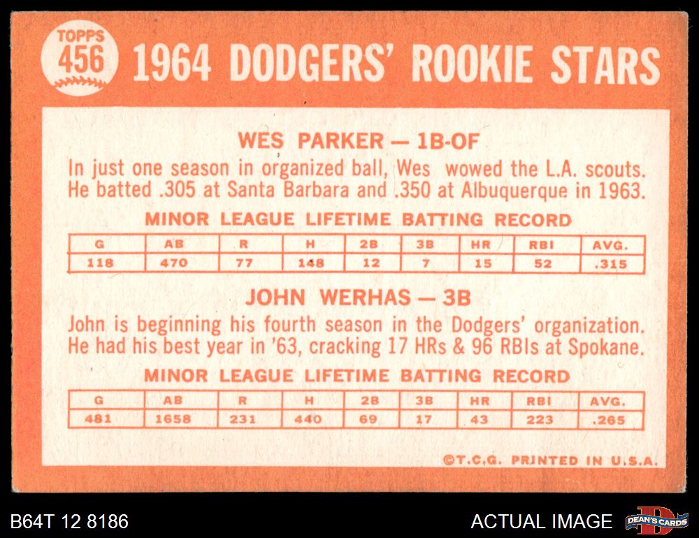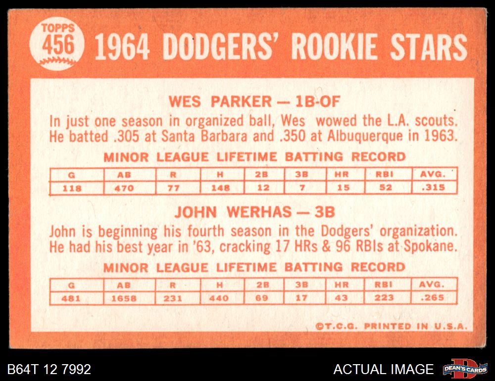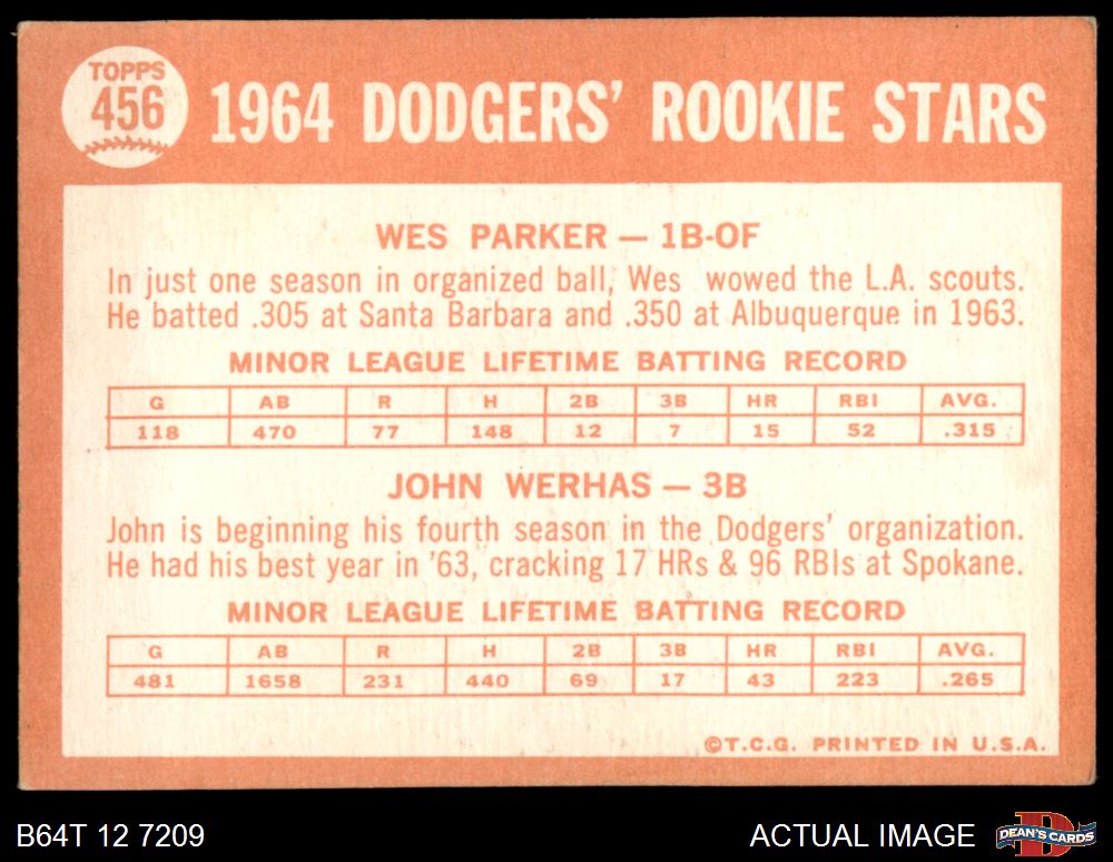 1964 Topps #456 - Wes Parker / John Werhas Dodgers Rookies 3 - VG
