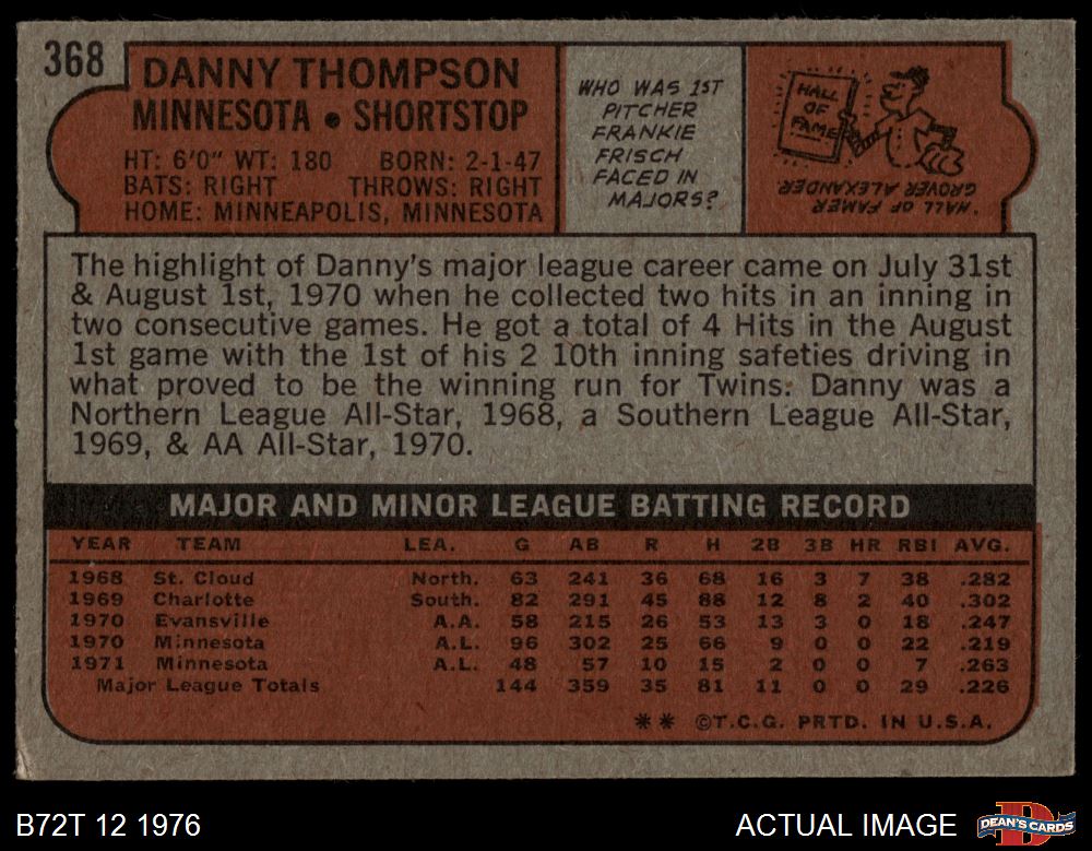 1972 Topps #368 Danny Thompson
