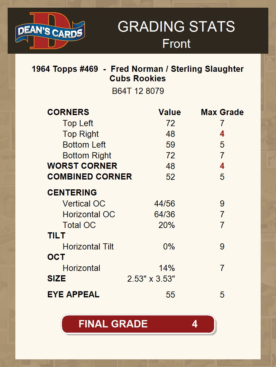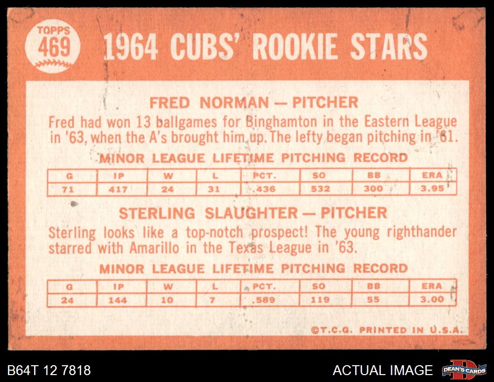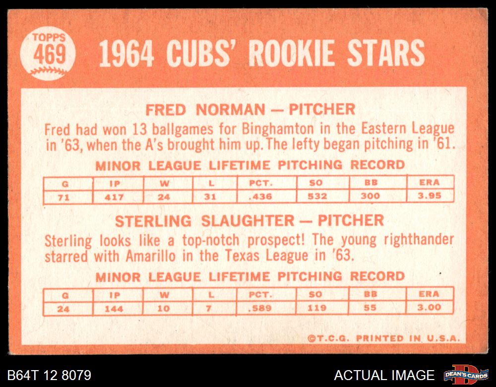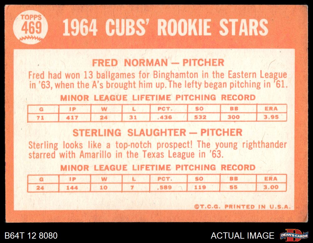 1964 Topps #469 - Fred Norman / Sterling Slaughter Cubs Rookies 4 - VG/EX