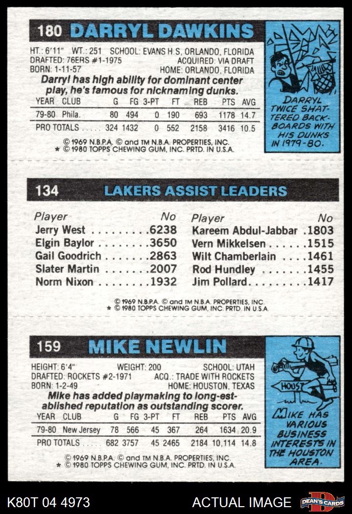 1980 Topps - Mike Newlin / Norm Nixon / Darryl Dawkins 159 / 134 / 180 5 - EX