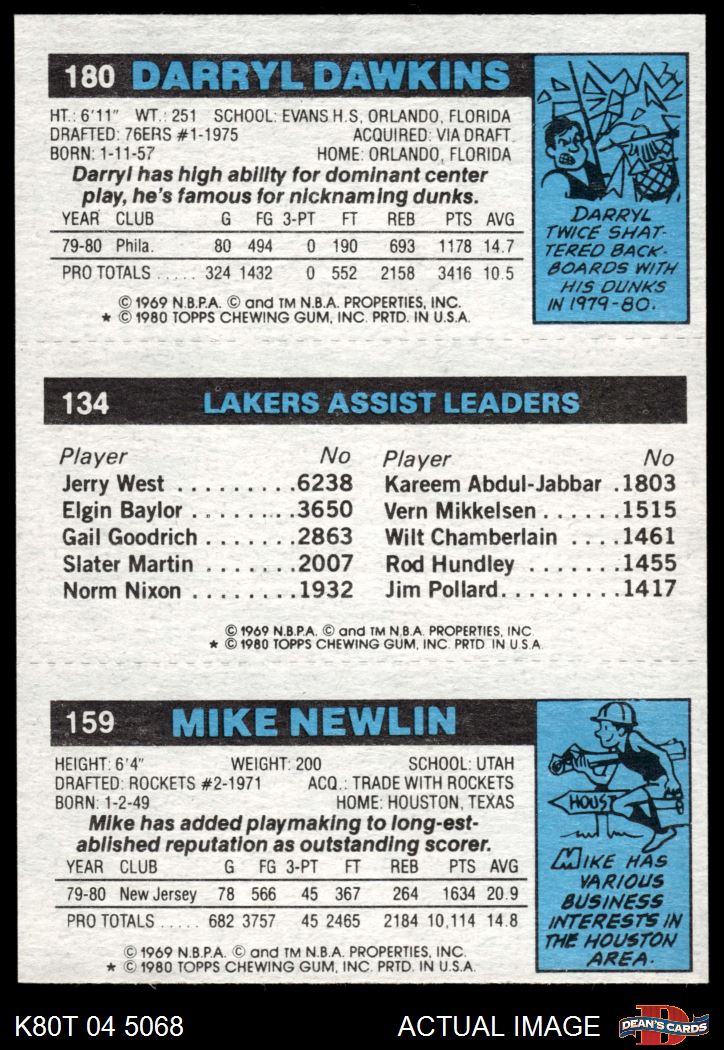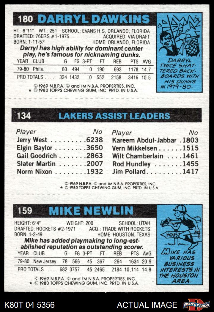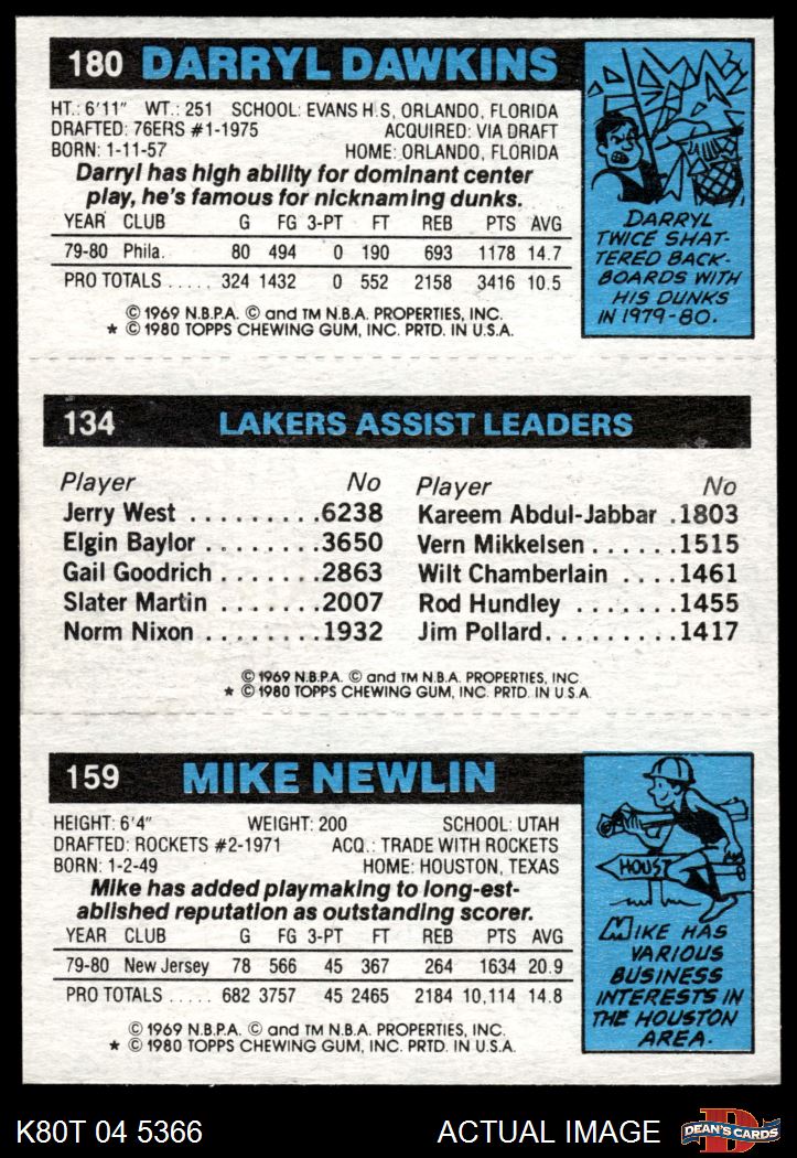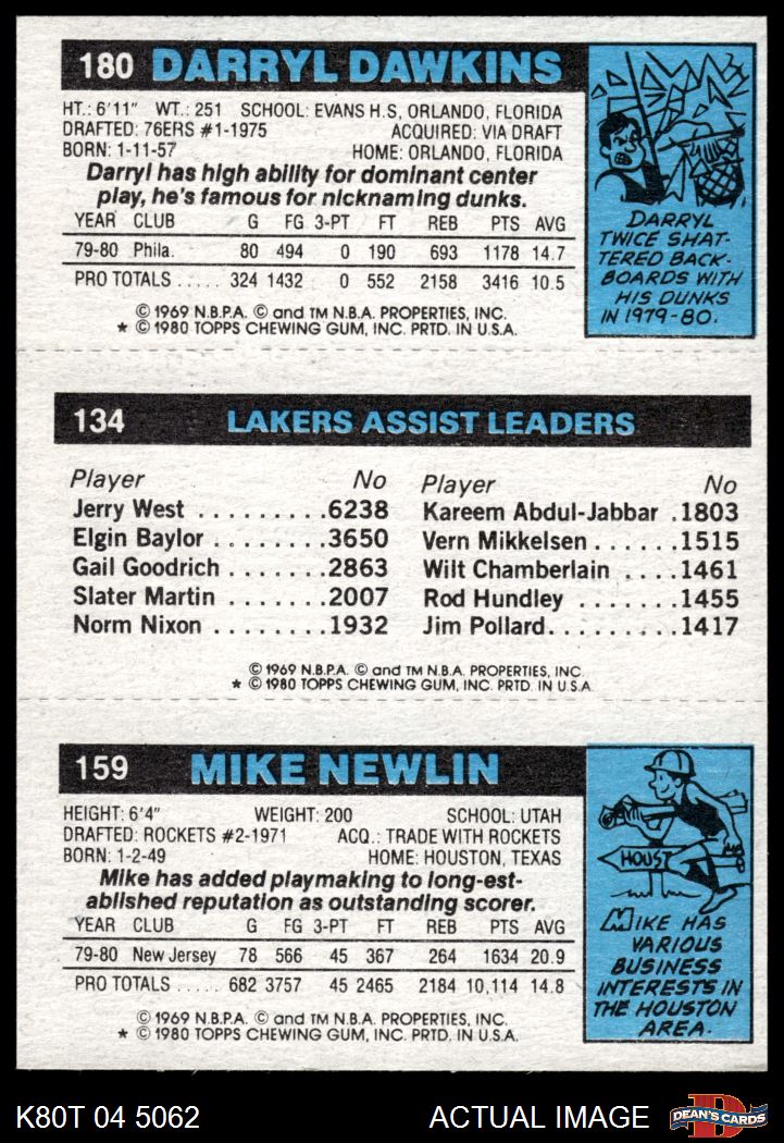 1980 Topps - Mike Newlin / Norm Nixon / Darryl Dawkins 159 / 134 / 180 7 - NM