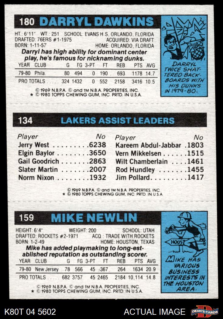1980 Topps - Mike Newlin / Norm Nixon / Darryl Dawkins 159 / 134 / 180 7.5 - NM+
