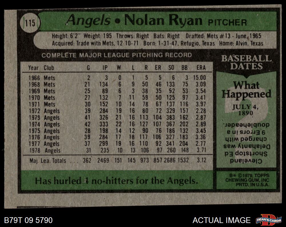 1979 Topps #115 Nolan Ryan 4 - VG/EX
