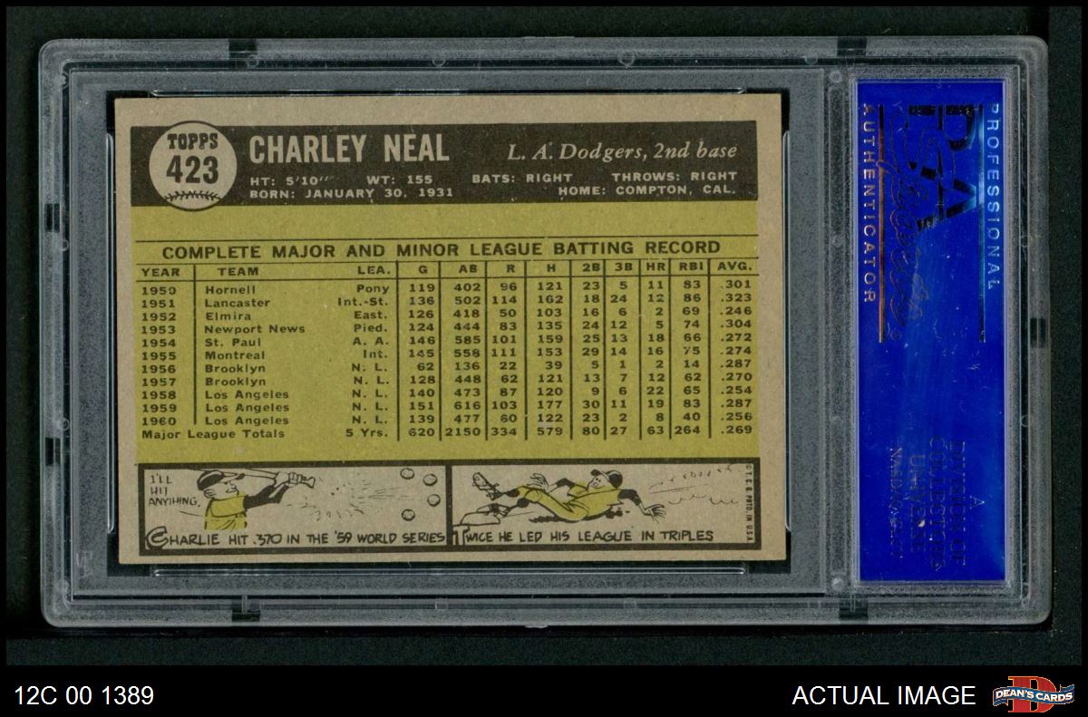 1961 Topps #423 Charlie Neal PSA 8 - NM/MT