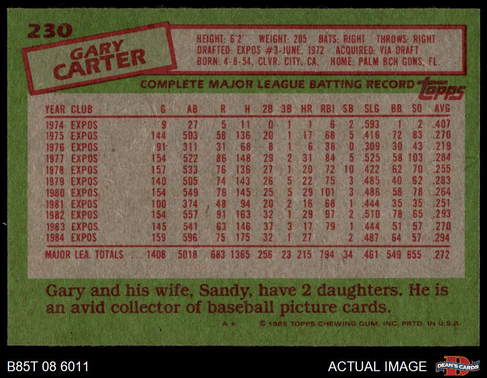 1985 Topps #230 Gary Carter 8 - NM/MT