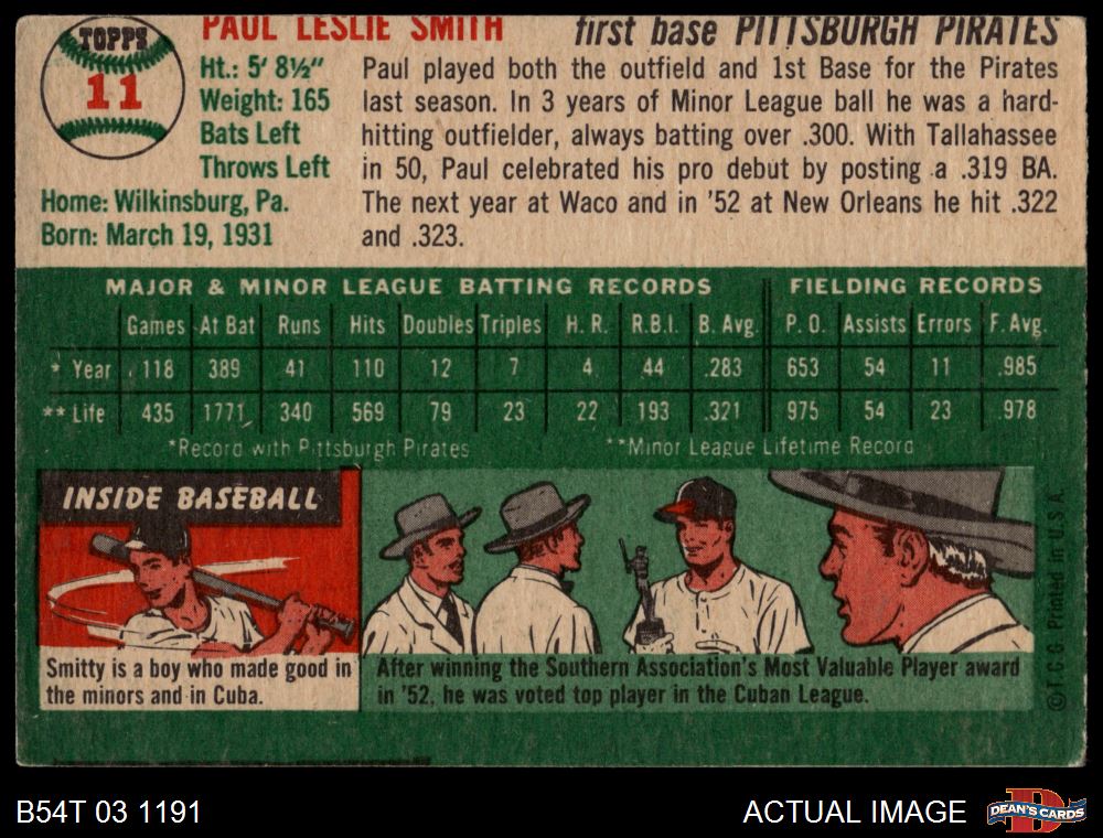 1954 Topps #11 WHT Paul Smith
