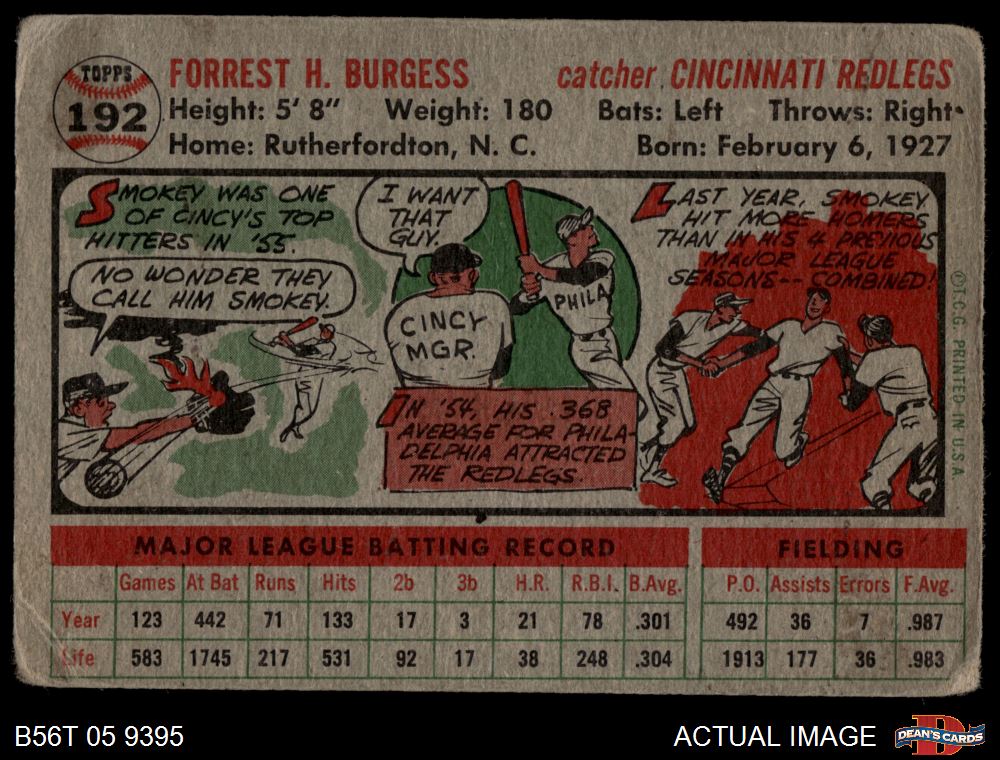 1956 Topps #192 Smoky Burgess 1 - POOR