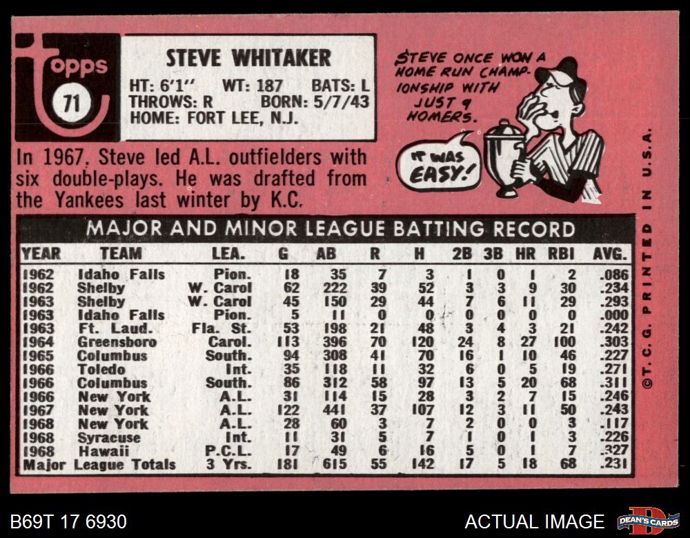 1969 Topps #71 Steve Whitaker 5 - EX