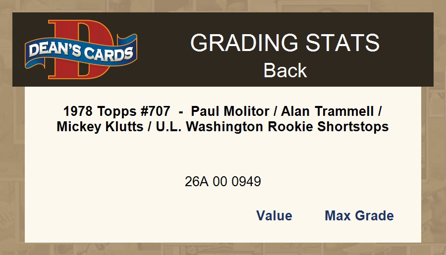 Paul Molitor / Alan Trammell / Mickey Klutts / U.L. Washington (8 available)