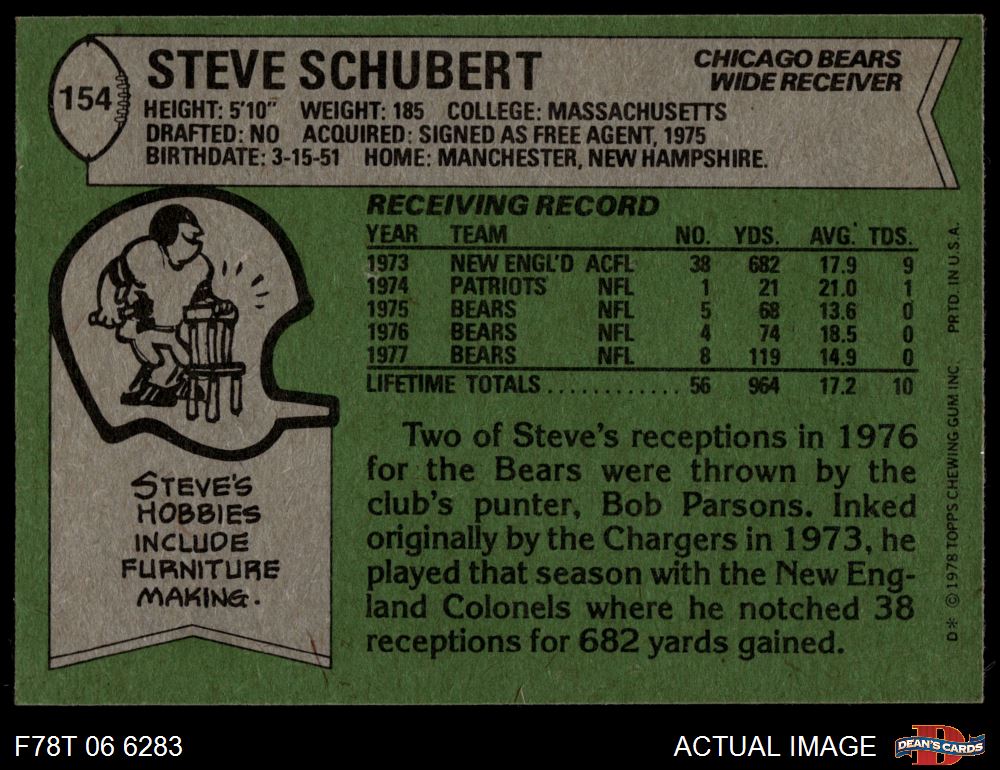 1978 Topps #154 Steve Schubert 6 - EX/MT