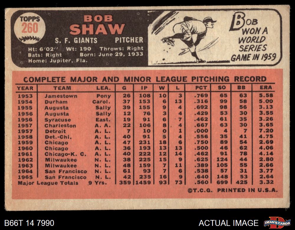1966 Topps #260 Bob Shaw