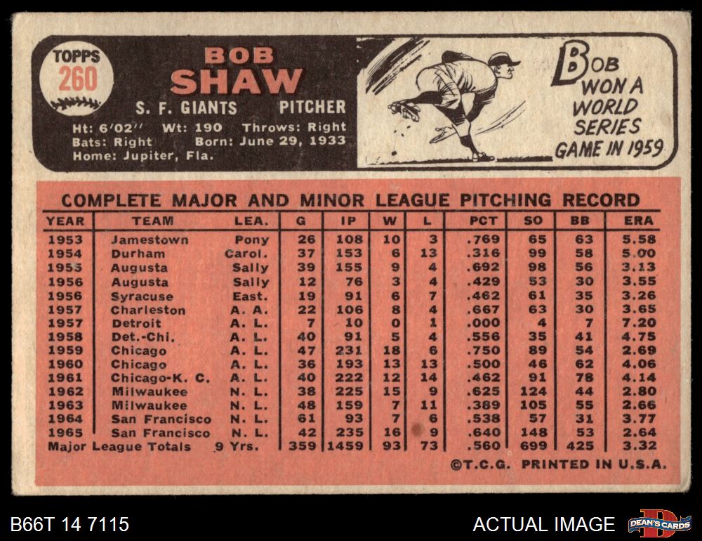 1966 Topps #260 Bob Shaw 2 - GOOD