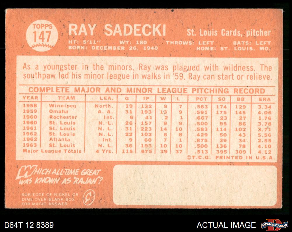 1964 Topps #147 Ray Sadecki 4 - VG/EX