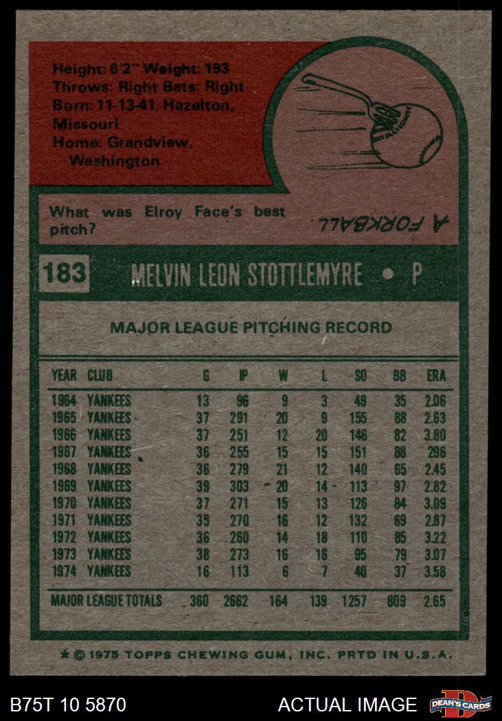 1975 Topps #183 Mel Stottlemyre 7.5 - NM+