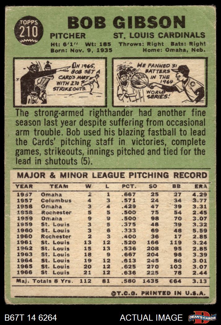 1967 Topps #210 Bob Gibson 1.5 - FAIR