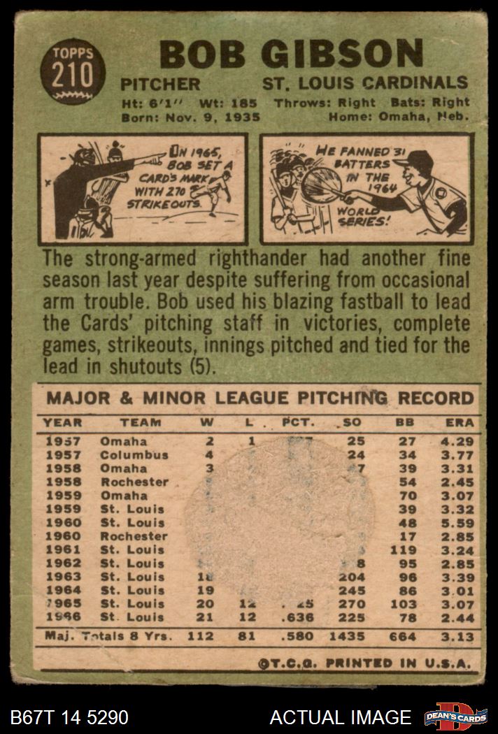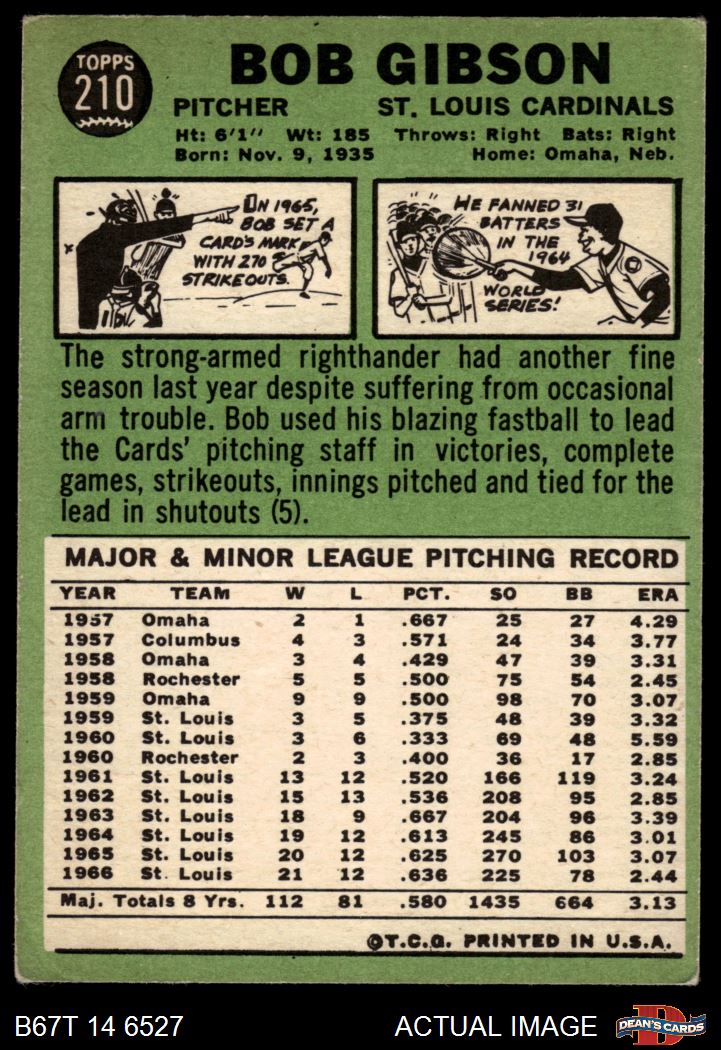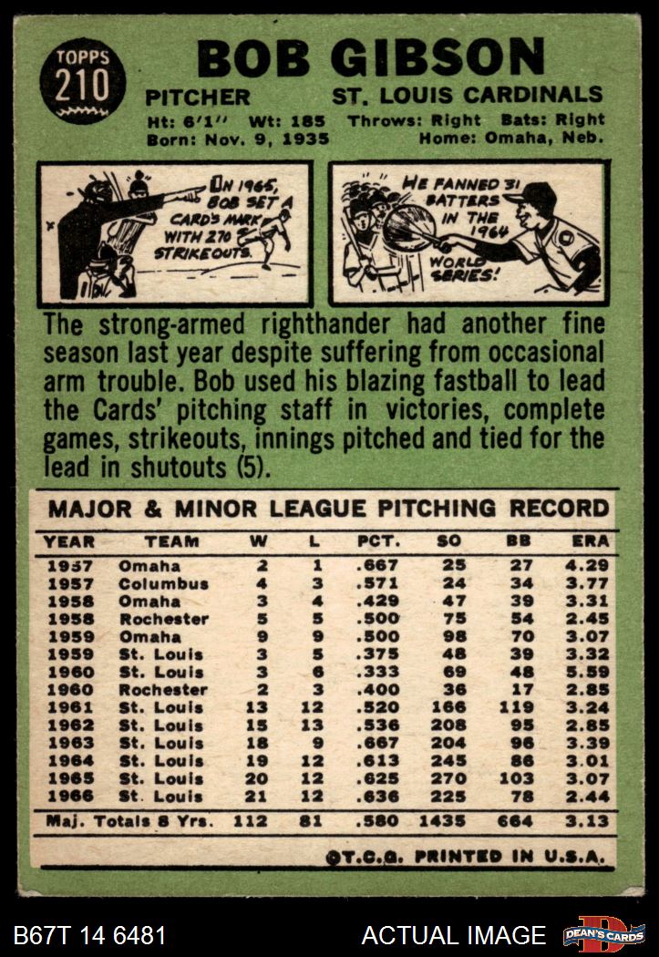 1967 Topps #210 Bob Gibson