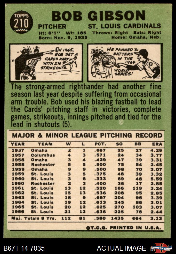 1967 Topps #210 Bob Gibson 2 - GOOD