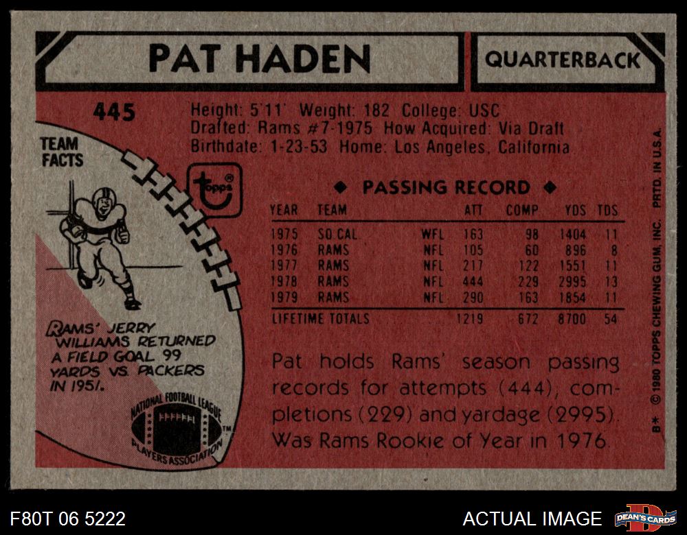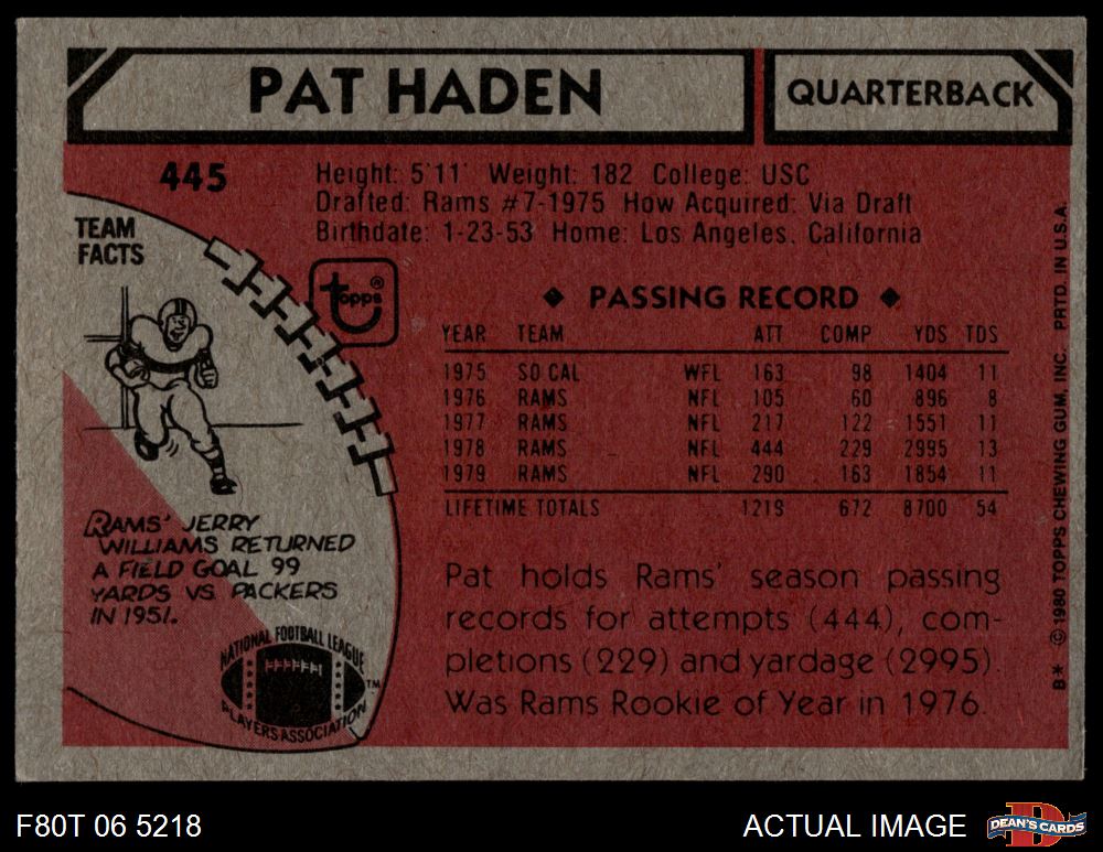 1980 Topps #445 Pat Haden 5 - EX