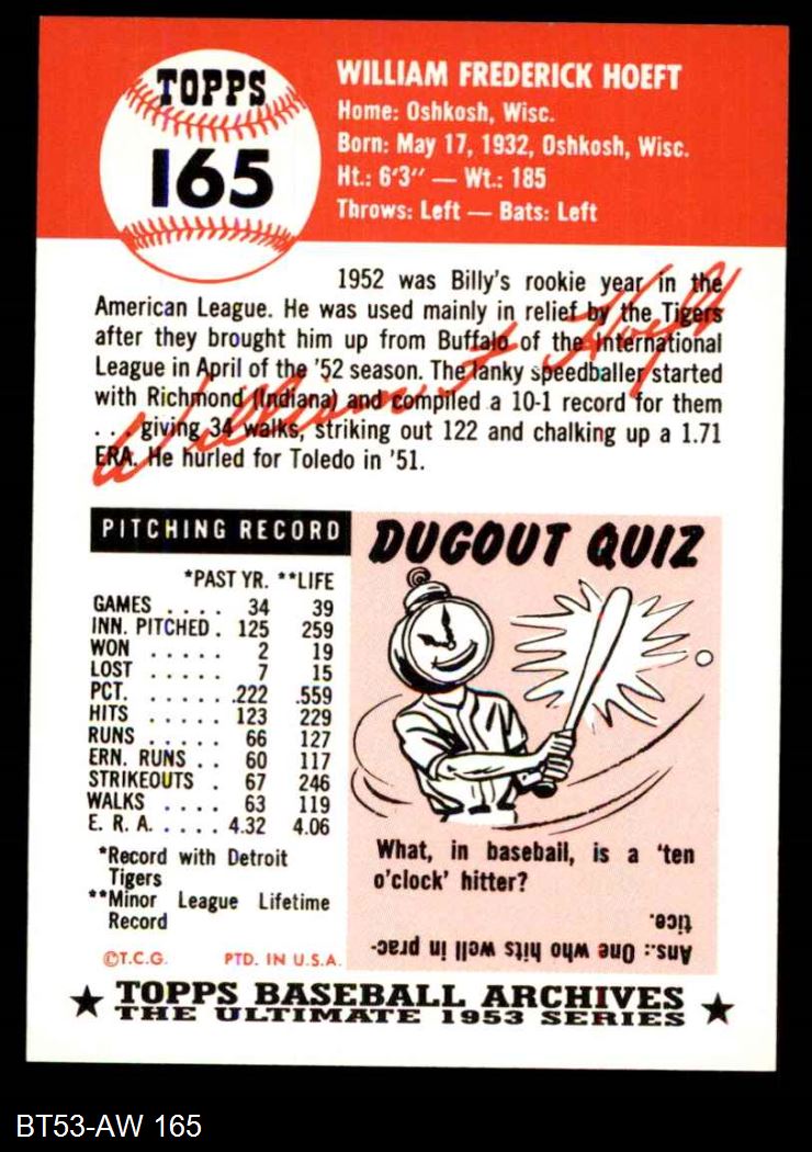 1953 Topps Archives #165 Billy Hoeft 8 - NM/MT
