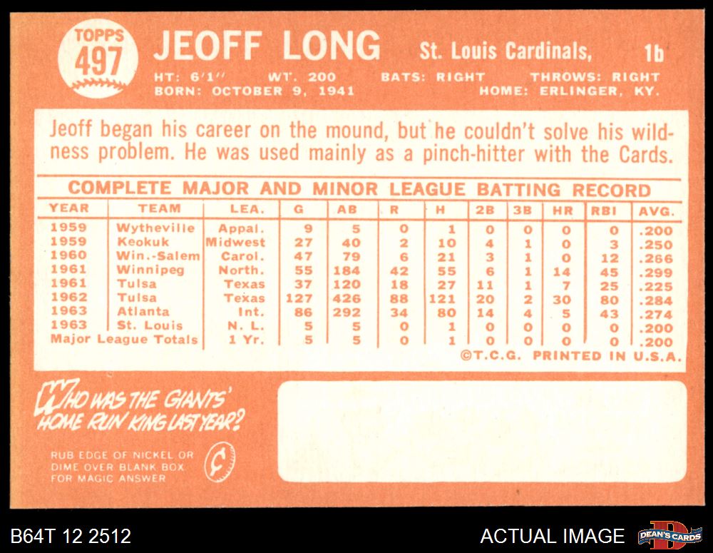 1964 Topps #497 Jeoff Long 6 - EX/MT