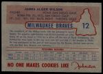 1953 Johnston Cookies #12 Jim Wilson Front Thumbnail