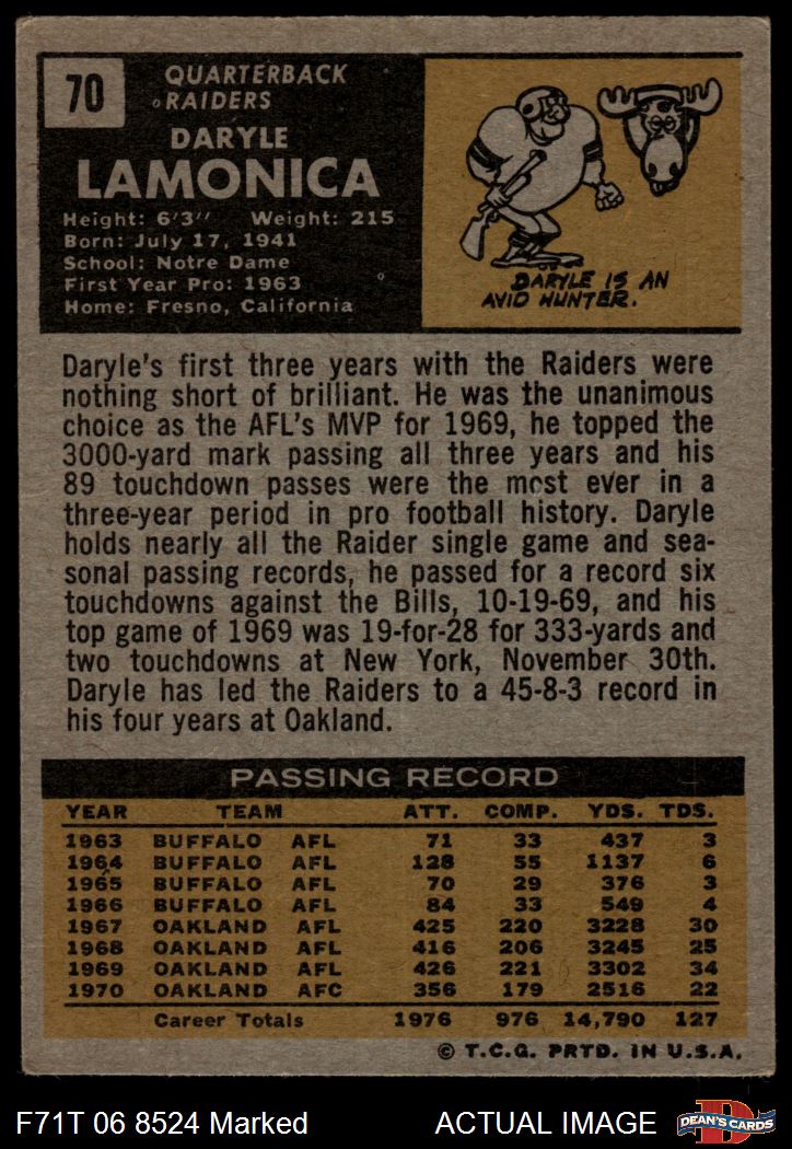1971 Topps #70 Daryle Lamonica Front Thumbnail