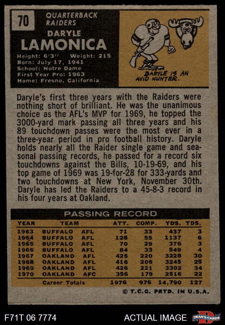 1971 Topps #70 Daryle Lamonica 3 - VG