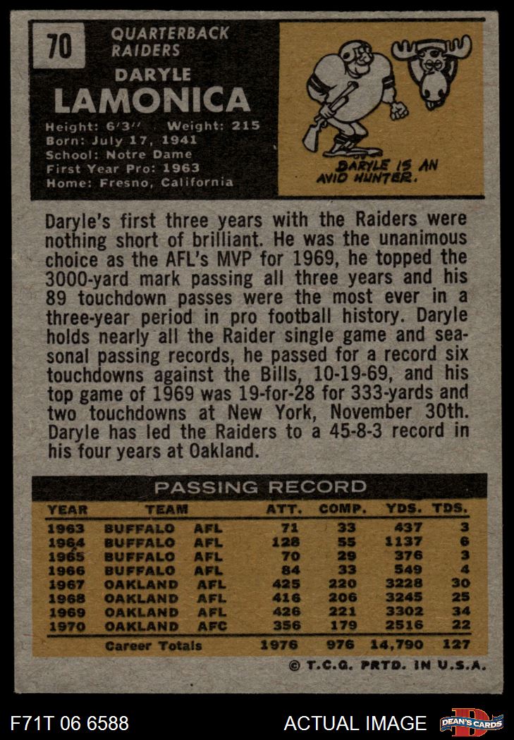 1971 Topps #70 Daryle Lamonica 4 - VG/EX