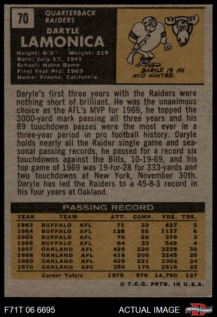 1971 Topps #70 Daryle Lamonica 6 - EX/MT