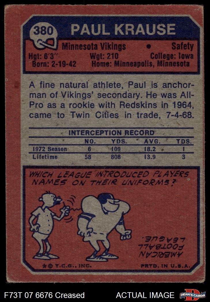 1973 Topps #380 Paul Krause 1.5 - FAIR