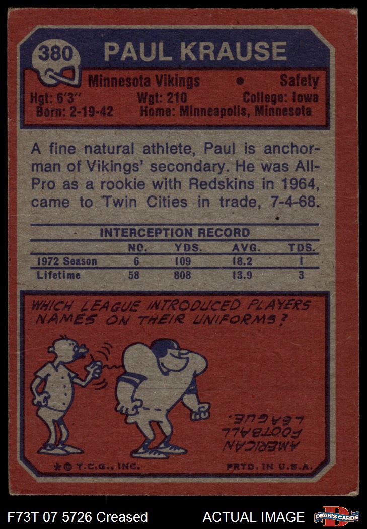 1973 Topps #380 Paul Krause 2 - GOOD