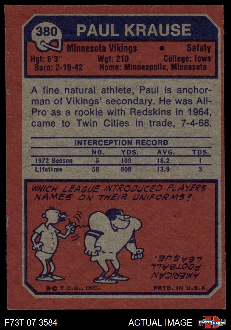 1973 Topps #380 Paul Krause 6 - EX/MT