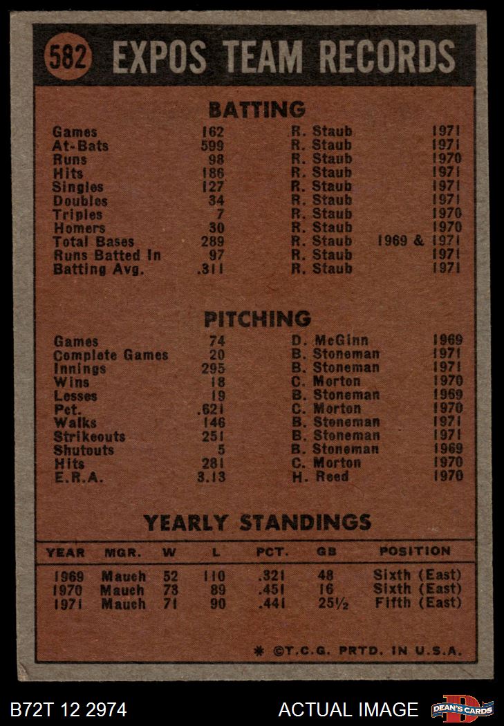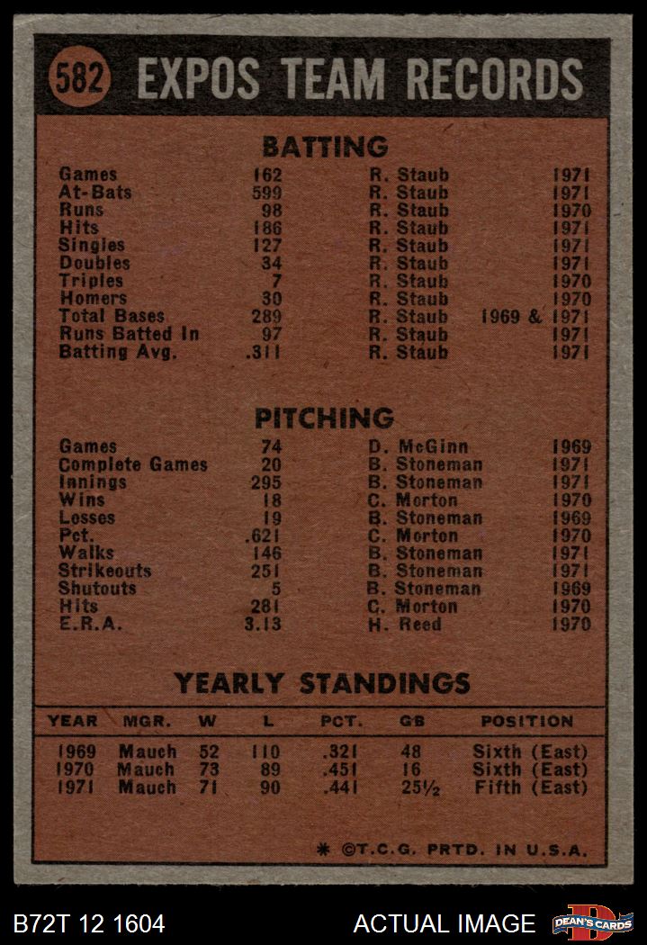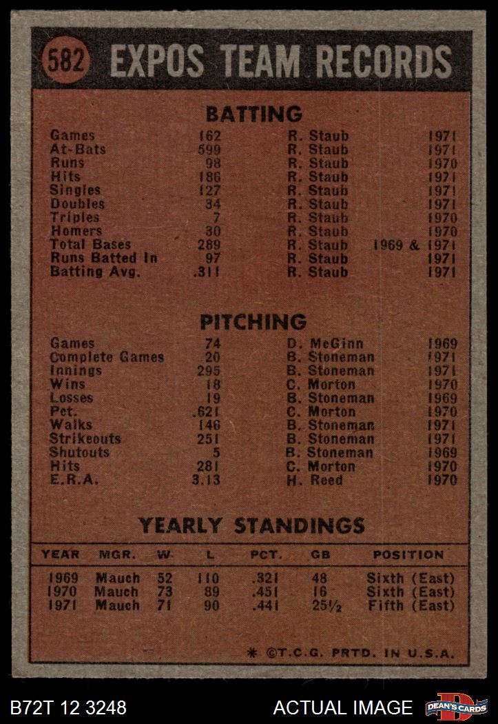 1972 Topps #582 Expos Team