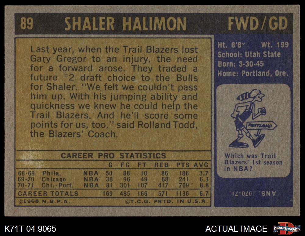 1971 Topps #89 Shaler Halimon 5 - EX