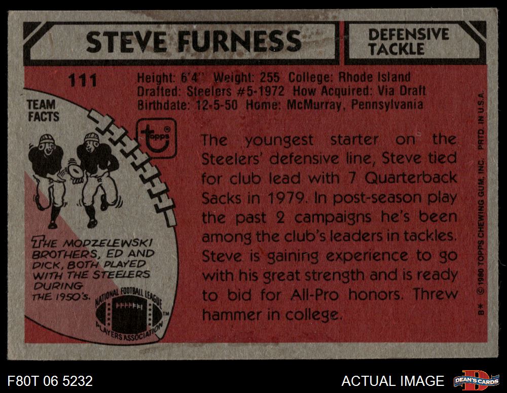 1980 Topps #111 Steve Furness 3.5 - VG+