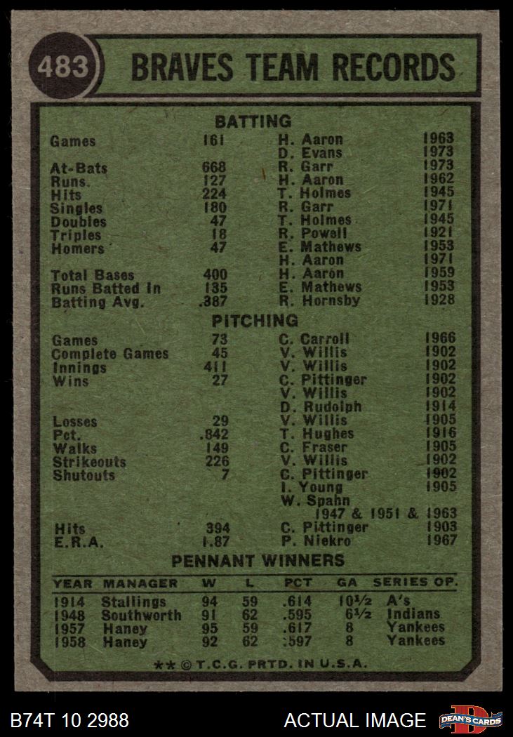 1974 Topps #483 Braves Team