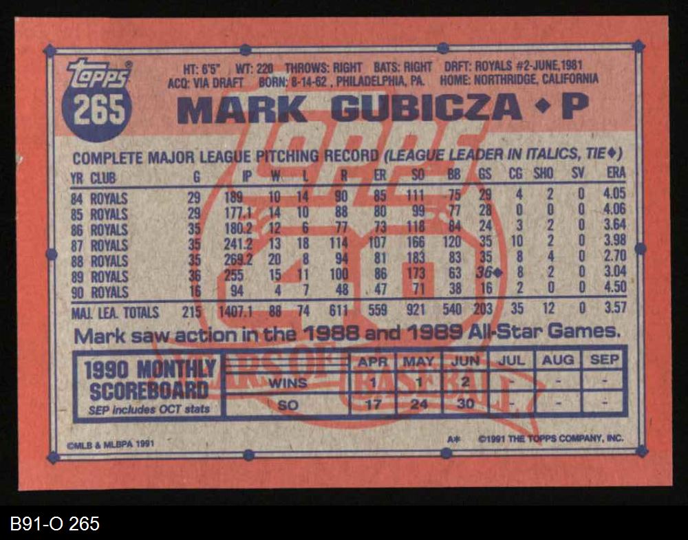 1991 Topps #265 Mark Gubicza