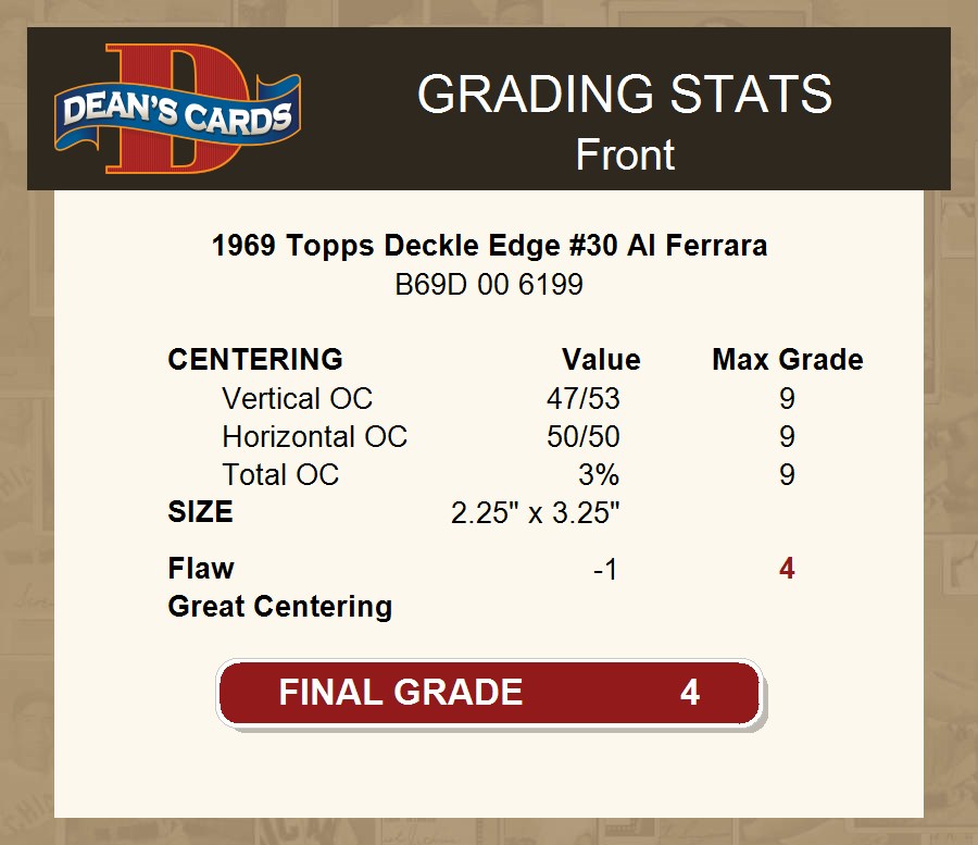 1969 Topps Deckle Edge #30 Al Ferrara 4 - VG/EX
